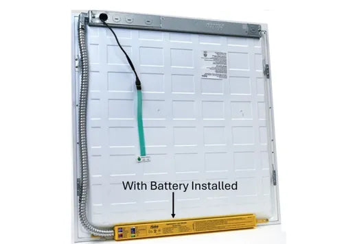 This is the Halco ProLED FPL-22-LS-CS-UNV-EM (90525), the emergency backup version of 90519. This 2x2 LED Flat Panel consumes a selectable 20/30/35 watts of 120-277 volt energy and the driver has a power factor of 90%. The built in emergency battery backup system will stay on, operating for 90 minutes after the power has gone out. Emergency light fixtures automatically switch on when power goes out to illuminate pathways toward egress exits.