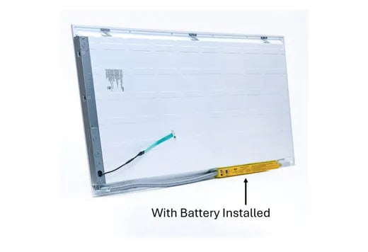 This is the Halco ProLED FPL-24-LS-CS-UNV-EM (90526), the emergency backup version of 90520. This 2x4 LED Flat Panel consumes a selectable 30/35/45 watts of 120-277 volt energy and the driver has a power factor of 90%. The built in emergency battery backup system will stay on, operating for 90 minutes after the power has gone out. Emergency light fixtures automatically switch on when power goes out to illuminate pathways toward egress exits.
