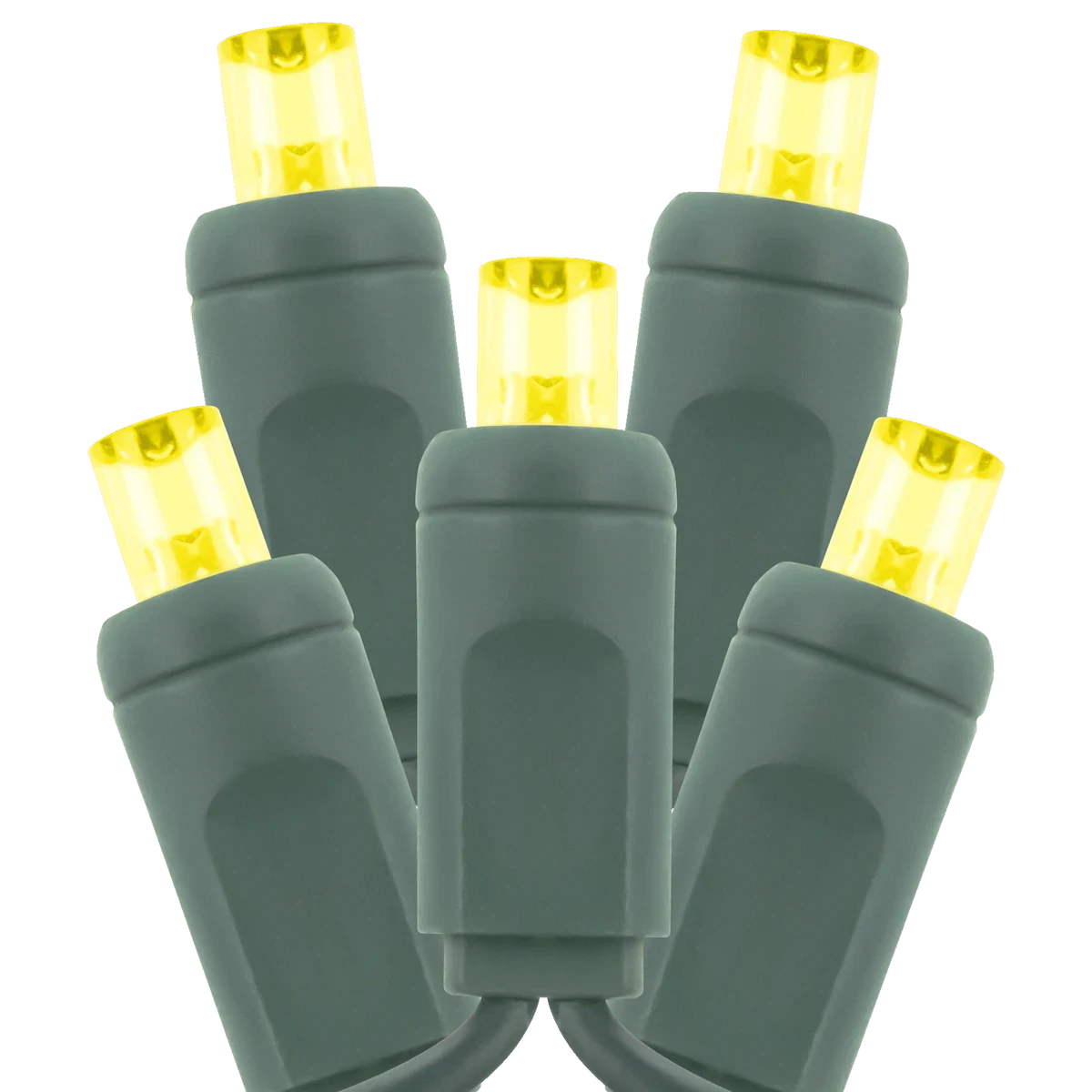 These American Lighting 5MM Holiday lights, UL Listed, indoor/outdoor rated commercial Holiday lights are the Gen 2 CLS-5MM Wide Angle Holiday lights. The American Lighting 5MM, LED Holiday light bulb covers will not fade, chip or peel. There are no glass bulbs to replace or break as these are permanent LED lamps. This LED stringer is UL Listed for indoor or outdoor use giving you the flexibility to use them for indoor or outdoor Holiday lighting. This string of 5MM Wide Angle LED Holiday lights uses either 2.4 or 4.8 watts per string depending on the color and runs off of 120 volt energy. The Green 20AWG wire supports long runs. Each commercial Holiday light set is 25 feet long and has 50 bulbs per string (6" spacing). You are able to connect up to 125 LED string lights end-to-end to a single power adapter. These LED string lights are great for use as Holiday tree lights, for Holiday decorating, and other holiday lights displays.