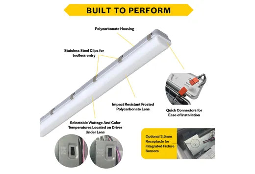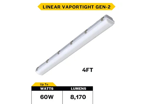 The ProLED Select Generation 2 Linear Vaportight provides on target lighting in the most severe conditions. This innovative product features both Wattage and CCT Selectability and is available in 2, 4 and 8-foot lengths. The rugged durability of the ProLED Select LVPT coupled with Wattage and CCT Selectability makes this the most versatile Linear Vaportight fixture on the market.