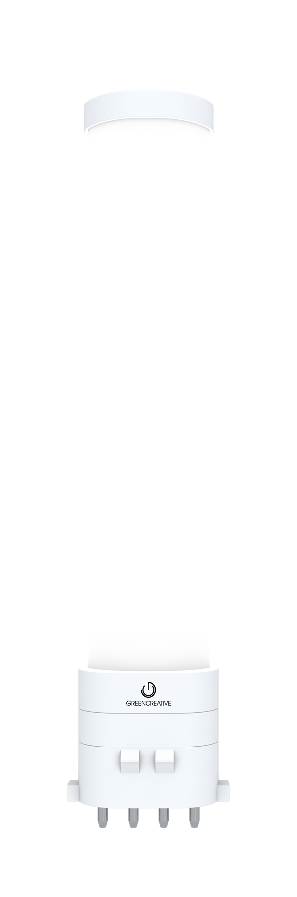 The 5.5 watt Green Creative 5.5PLS/8CCTS/BYP/2GX7 CCT Selectable Type B Ballast Bypass LED PL Lamp is a versatile, energy-efficient upgrade designed to replace traditional 13W CFL lamps with superior performance and flexibility. Engineered for ballast bypass (line voltage) installation, this 2GX7 4-Pin base PL lamp seamlessly operates on 120-277V. Featuring advanced SelectKelvin technology, users can easily switch between 2700K, 3000K, 3500K, and 4000K color temperatures to achieve the perfect lighting tone for any environment. Its 180° rotatable base enables precise directional lighting, while the ability to install the lamp horizontally or vertically ensures optimal fixture performance in a wide range of applications.