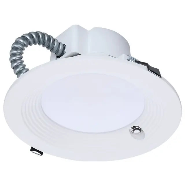 The versatile Satco S21605 is a 6" round downlight with emergency battery backup offering selectable wattage options of 16.3W, 18.2W and 20.5W and a wide 120-347V operating range. Delivering up to 2200 lumens with a smooth 105° beam angle, its 5CCT adjustability (2700K-5000K) ensures perfect lighting for any environment. While the white trim provides a clean, modern finish, the damp location and IC ratings, Title 24 compliance, and a dependable 5 year warranty make it a reliable, efficient choice for new construction or retrofit applications.