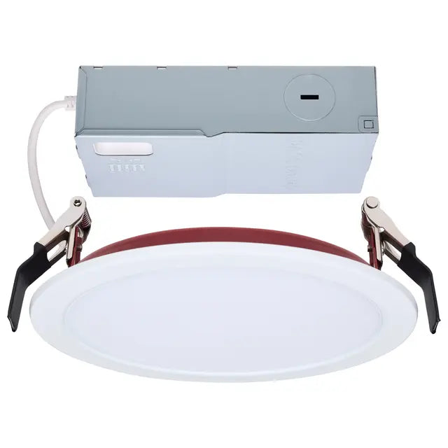 The Satco S11866R1 (13WLED/6/FR/CCT/SLF/RD/FL/RND) is a round dimmable 6-inch fire rated downlight, equipped with 5 color selectable options, 2700K (Warm White), 3000K (Warm White), 3500K (Bright White), 4000K (Cool White) and 5000K (Daylight). Satco's Fire Rated LED Downlights are ultra-efficient, super-easy and very affordable. These slim fit, Flat Lens wafer LED downlights provide 1100 lumens of brilliant illumination but only require 10 watts of energy use. Rated for wet locations and carry a 5-year limited warranty.