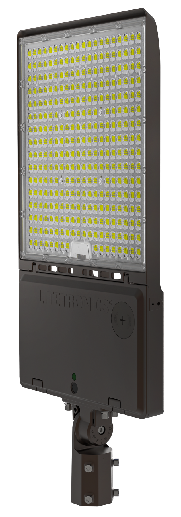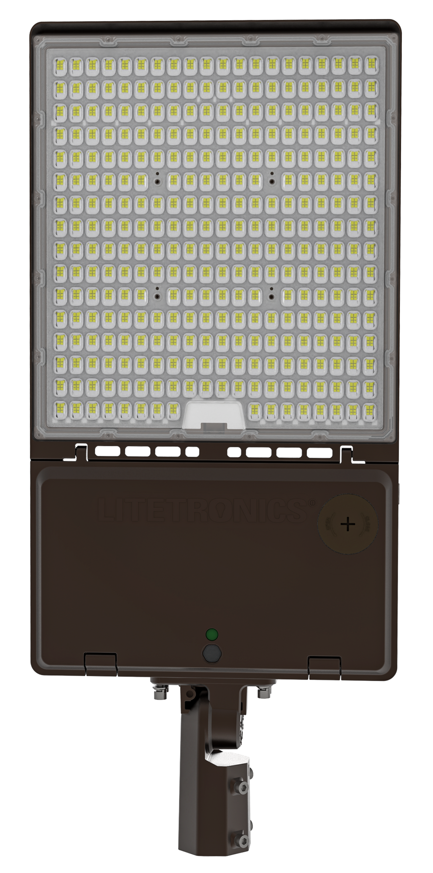 The LiteTronics ALP500 LED Area Light Pro is built to simplify outdoor lighting with unmatched flexibility and high efficiency. Delivering up to 160 lumens per watt, it offers field-selectable options for 300/400/500 watts, producing up to 80,000 lumens. Selectable 3000K, 4000K, or 5000K color temperatures and adjustable Type II, III, IV, or V optical distributions allows even more adaptability for any lighting need. Installation is faster than ever with LiteTronics’ Quick Slide mounting system, which lets the fixture slide directly into a variety of optional mounts (sold separately), saving valuable time and resources on every job. A durable dark bronze finish ensures long-term outdoor performance.